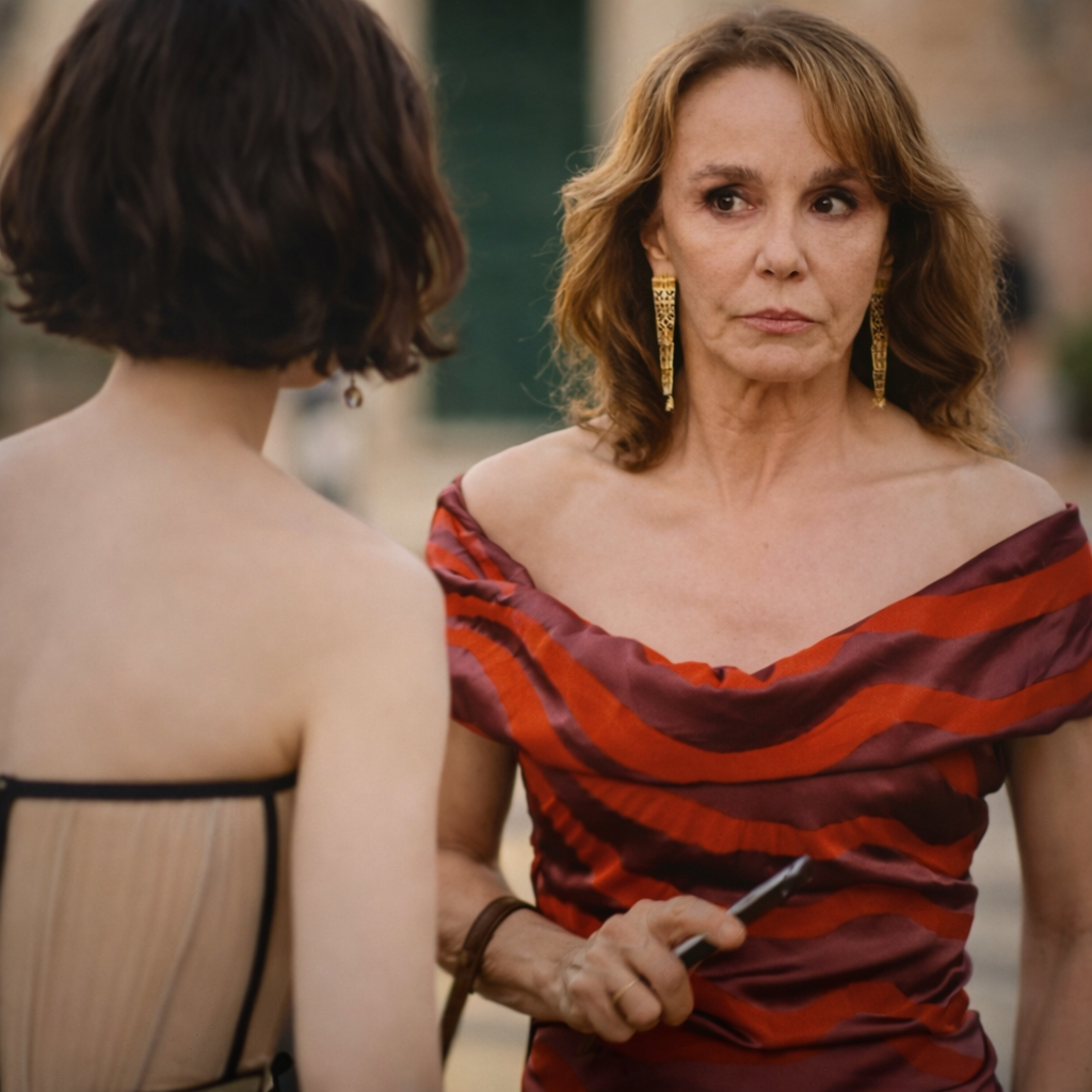 In the fourth episode, the Duomo Ring and the Galleria Borghese earrings are featured in selected frames of Sylvie’s look, defining the image and the scene.