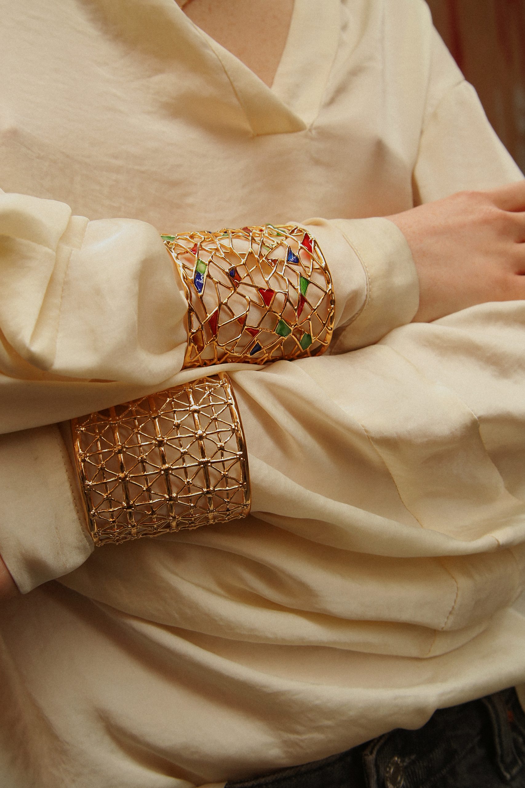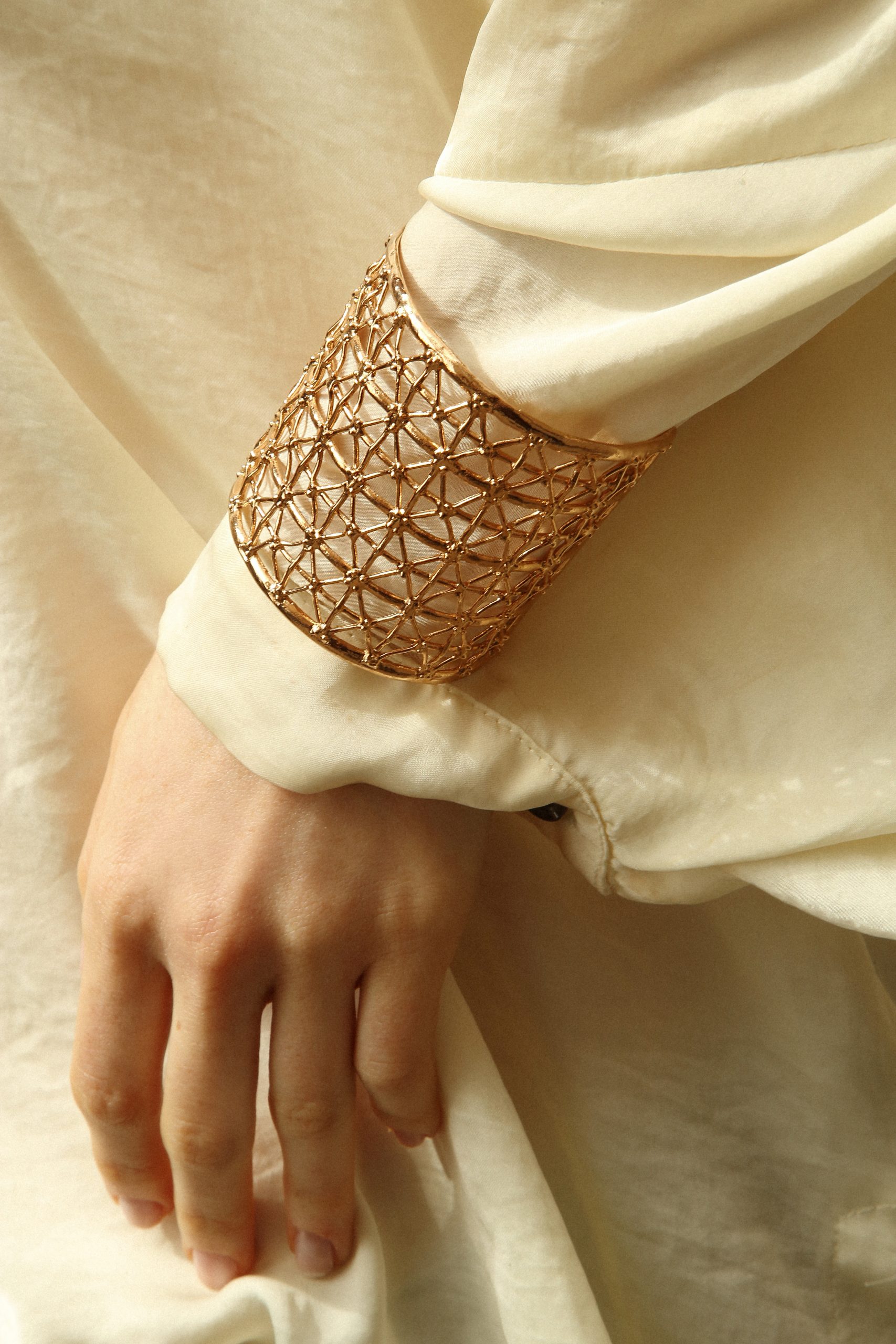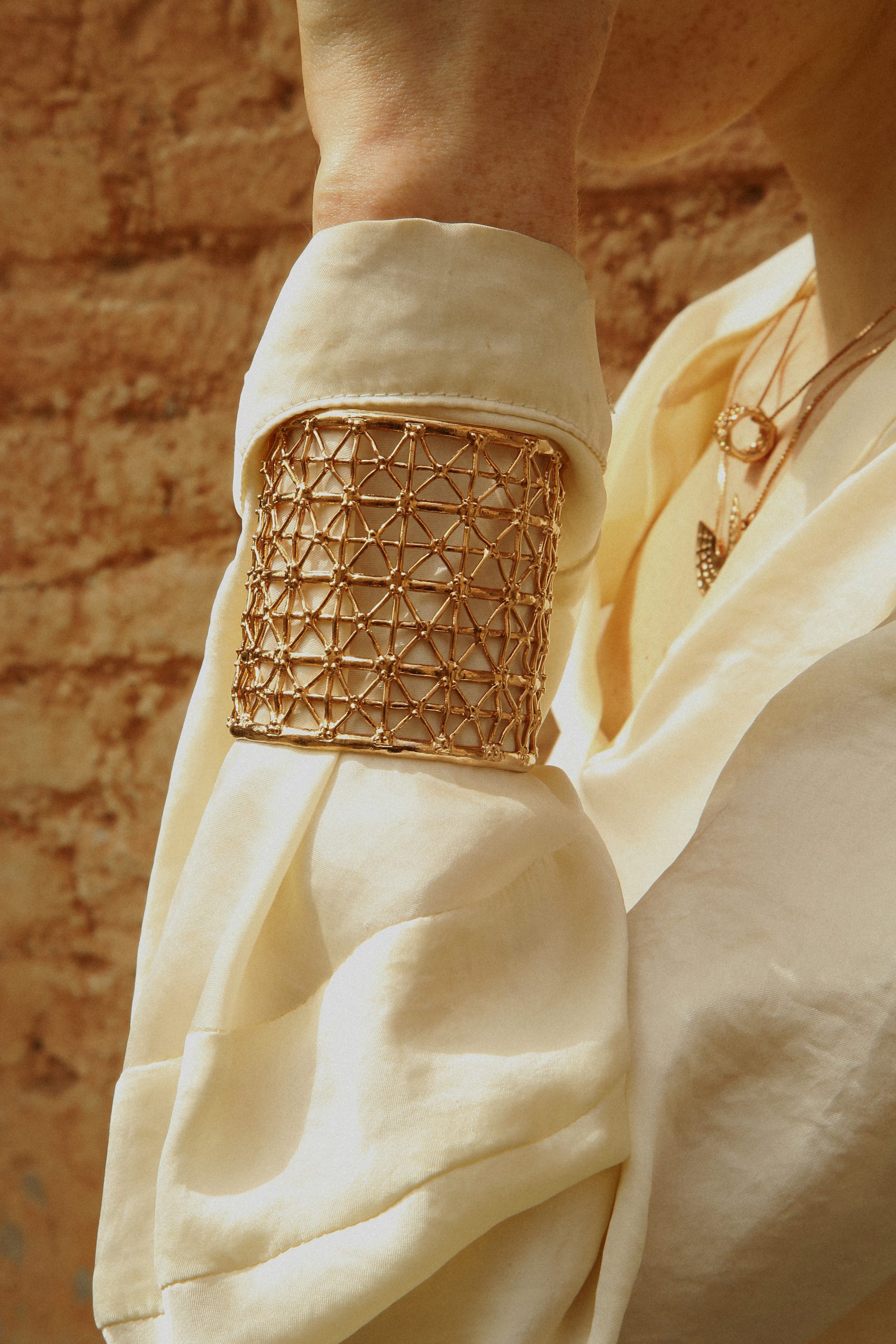 The ‘Gasometro’ cuff celebrates the industrial archaeology electrical dream by reinventing the forms of the renowned building located in the alternative Roman neighbourhood Ostiense.